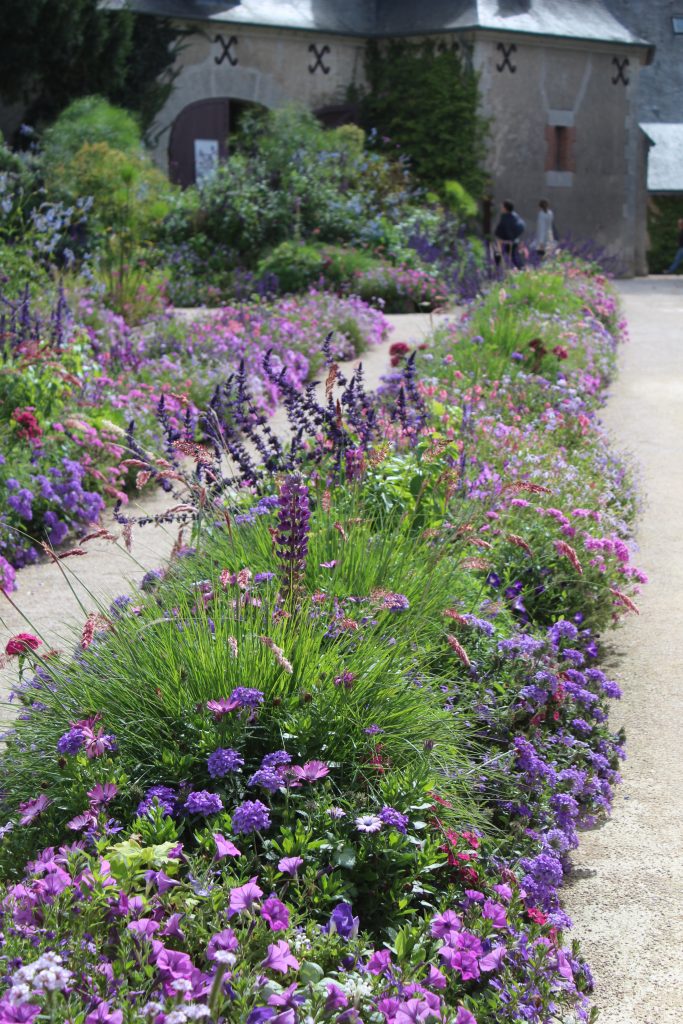 But the very great difference between Chaumont and Chelsea is underscored by a walk round the rest of the Domaine, from Land Art artfully placed in the best of site specific ways, (above is Christian Lapie: La constellation du fleuve 2015) a visit to contemporary art exhibitions housed in the stables, a wander through the courtyards and to the chateau. During this peregrination you will see the sort of gardening that is surly done and perfectly executed – from bedding exuberance round the castle and outbuildings to flower beds round the garden festival site. We examined it all, even the box topiary emerging from hoggin in the courtyards.