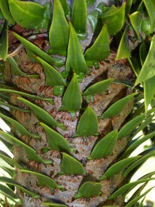 an intimate look at the stem of the monkey puzzle. Why exactly was the monkey puzzled?