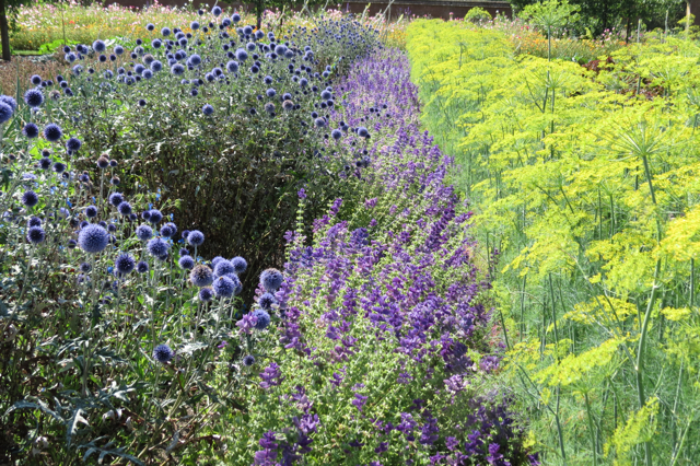 Hours of the weekend have been spent drooling over plant catalogues and trawling websites for ferns, clematis, dahlias, green manure crops and potatoes. And the rest. Our garden has been shredded and reduced to passive soil (bristling with weed seeds) and hard landscaping and after hours of penitential digging we are ready to go. But what to choose? Like King John's Christmas, I want everything and now. Unsurprising that insomnia has kicked in. Late night surfing has taken me to Alexandra Campbell's Middle Sized Garden and a list of possible plant colours to put together. Blue and yellow should be on that list - they always provoke a gasp so see above salvia, echinops and dill. In a large walled garden in Hampshire. Oh for the space to be able to plant like that.