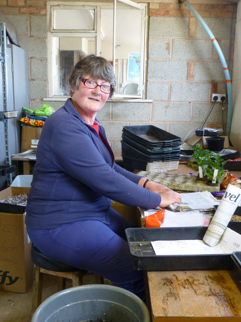 I was joined by Angela, post-room lady, plant propagator, owner of the Knowledge and the nursery too. She was busy wrapping little pelargonium plants in newspaper for despatch. But she pushed the cat and her work to one side and came and talked me through the appropriate ivies for my needs.